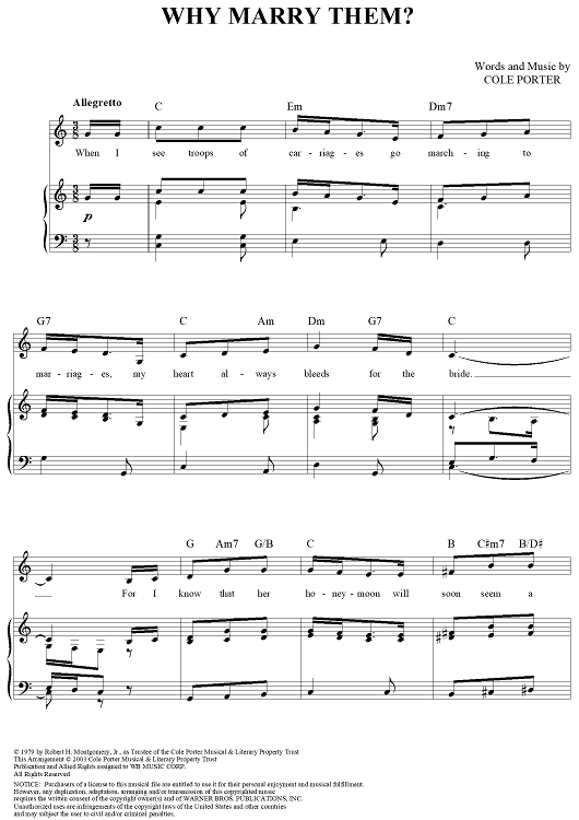 Digital Sheet Music for Why Marry Them? by Cole Porter scored for Piano/Vocal/Chords; id:303123