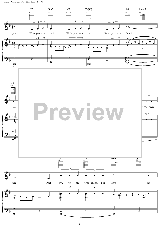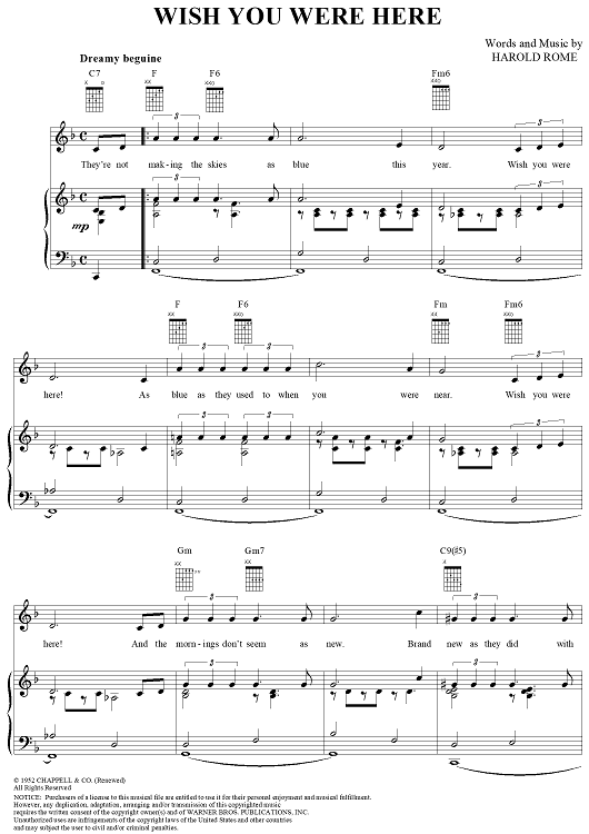 Digital Sheet Music for Wish You Were Here by Harold Rome scored for Piano/Vocal/Chords; id:132887