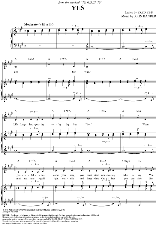 Digital Sheet Music for Yes by John Kander, Fred Ebb scored for Piano/Vocal/Chords; id:249740