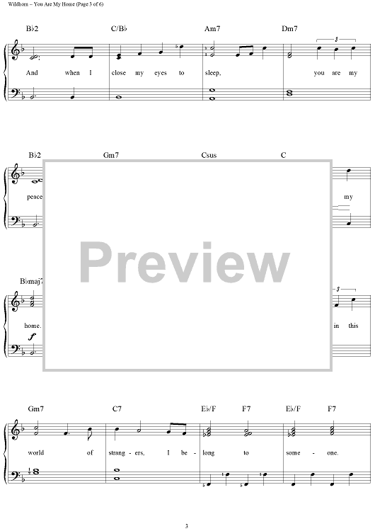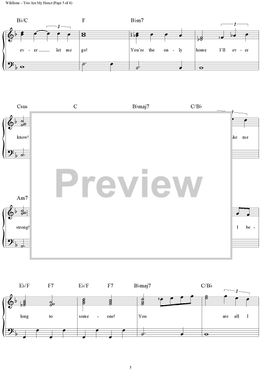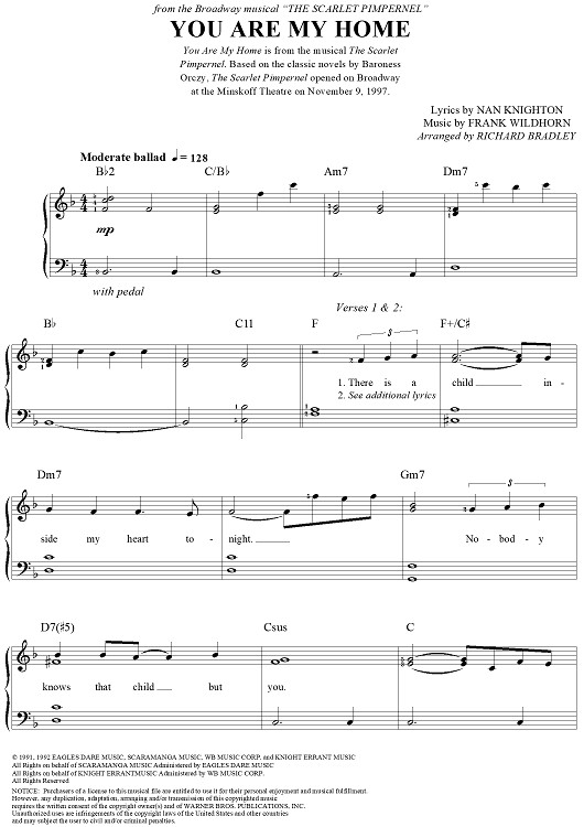 Digital Sheet Music for You Are My Home by Richard Bradley, Frank Wildhorn, Nan Knighton scored for Easy Piano/Vocal; id:263627