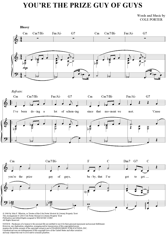 Digital Sheet Music for You're the Prize Guy of Guys by Cole Porter scored for Piano/Vocal/Chords; id:303189