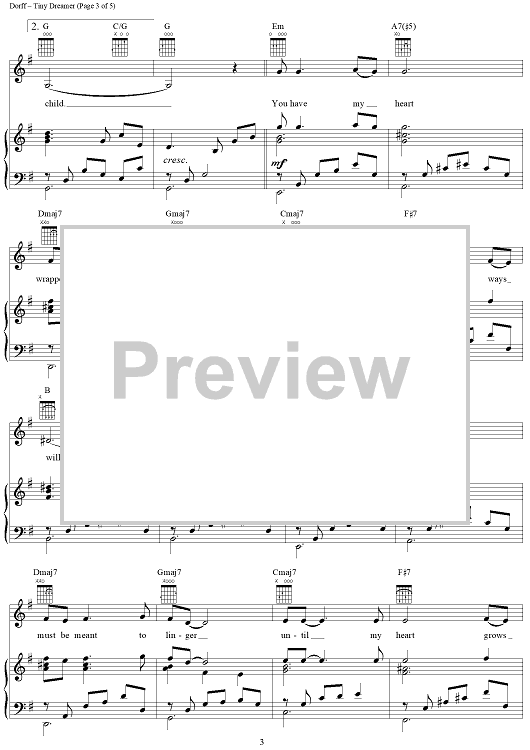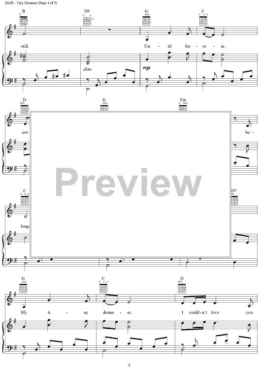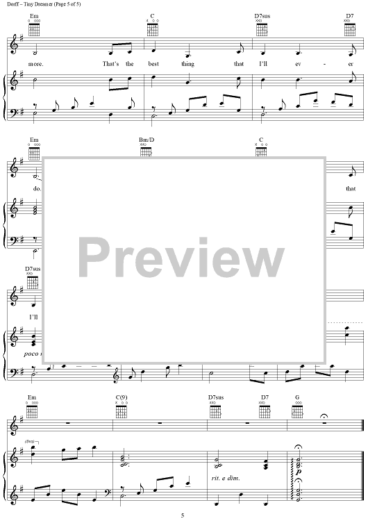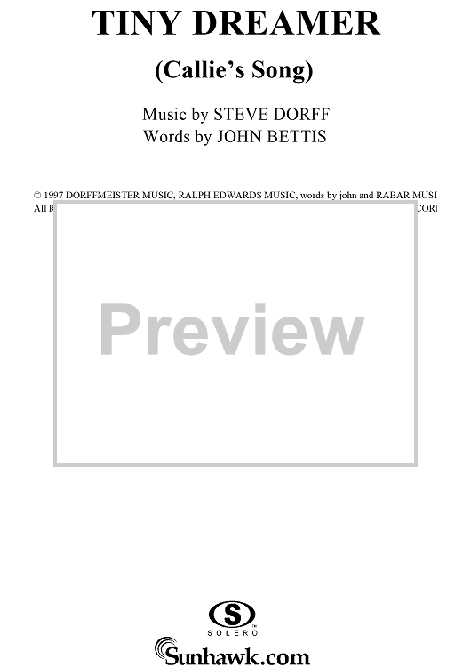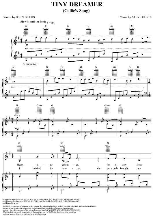 Digital Sheet Music for Tiny Dreamer (Callie's Song) by Nanci Griffith, Steve Dorff, John Bettis scored for Piano/Vocal/Chords; id:120371