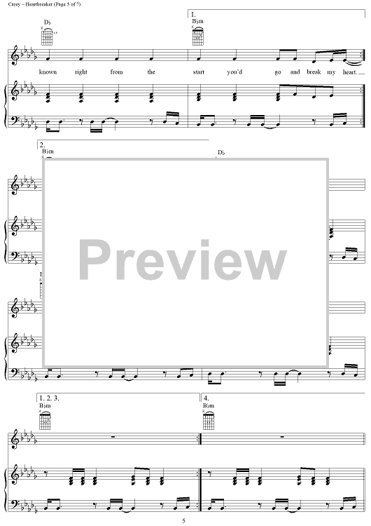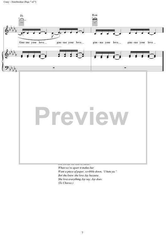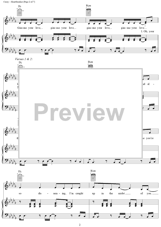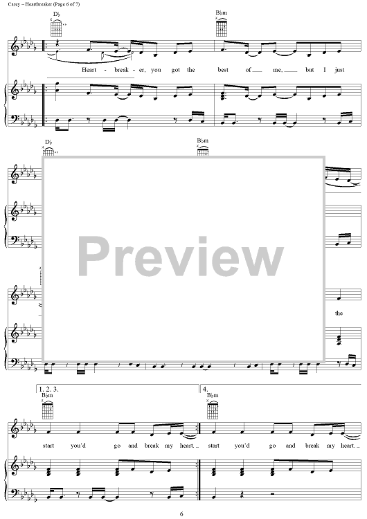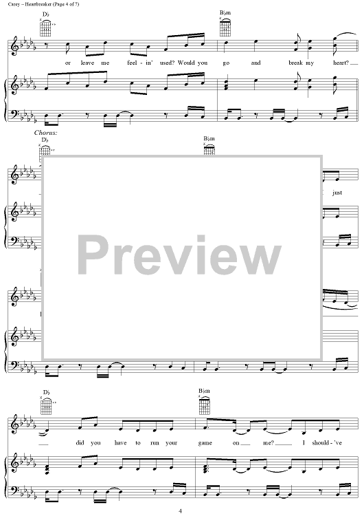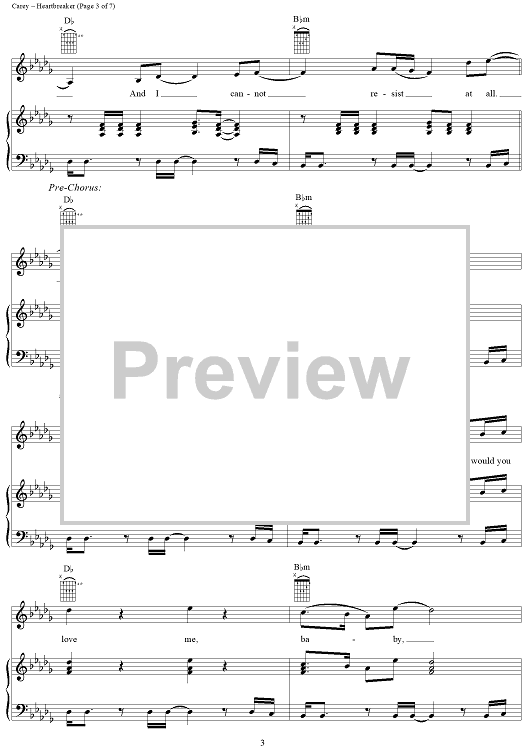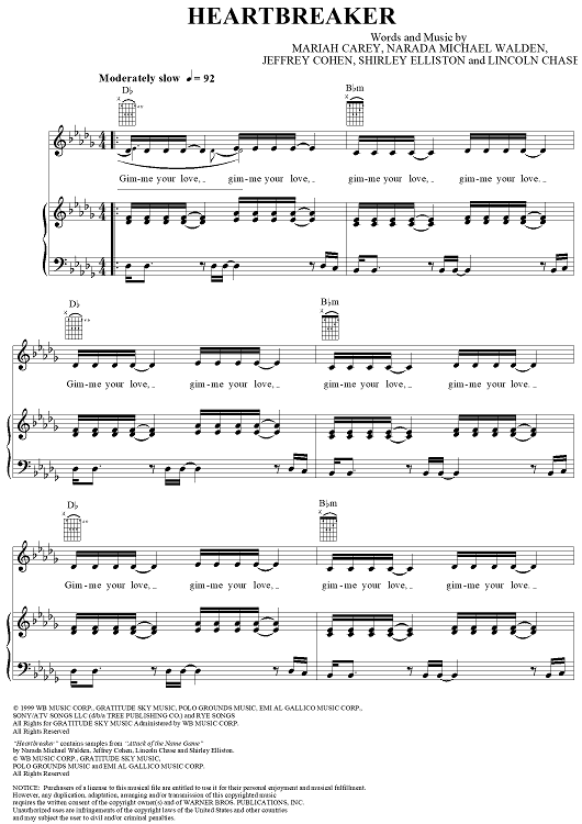 Digital Sheet Music for Heartbreaker by Mariah Carey, Shirley Elliston, Lincoln Chase, Jeff Cohen, Narada Michael Walden scored for Piano/Vocal/Chords; id:124152