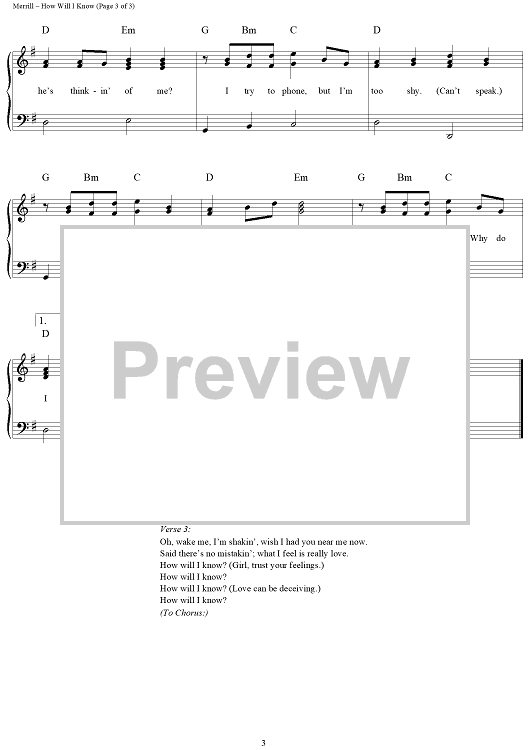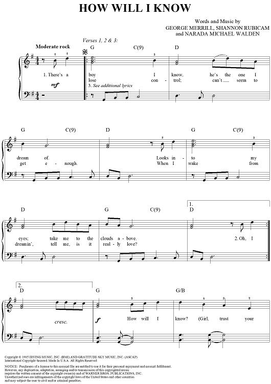 Digital Sheet Music for How Will I Know by George Merrill, Shannon Rubicam, Narada Michael Walden scored for Easy Piano/Vocal; id:252156