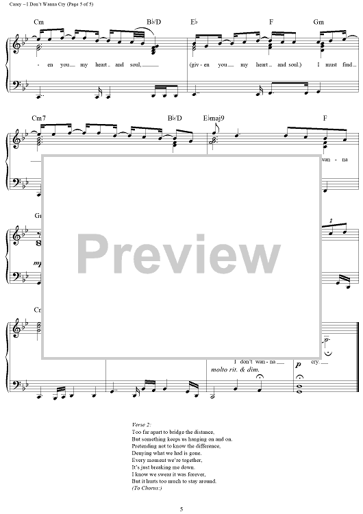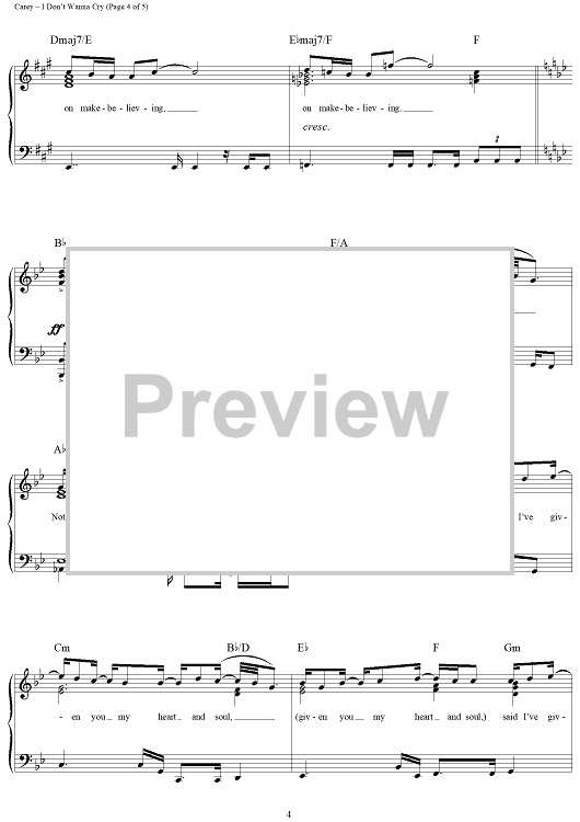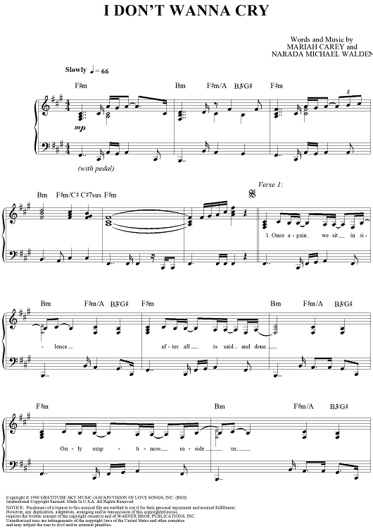 Digital Sheet Music for I Don't Wanna Cry by Mariah Carey, Narada Michael Walden scored for Piano/Vocal/Chords; id:273319