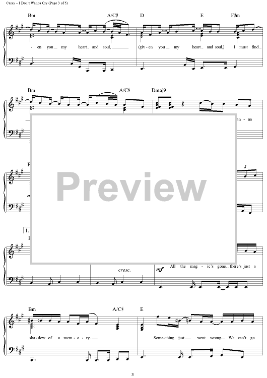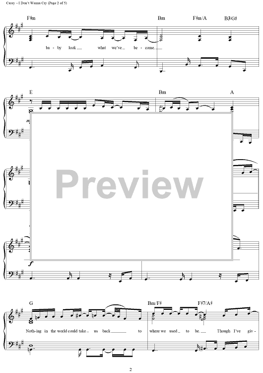 "I Don't Wanna Cry" Sheet Music by Mariah Carey