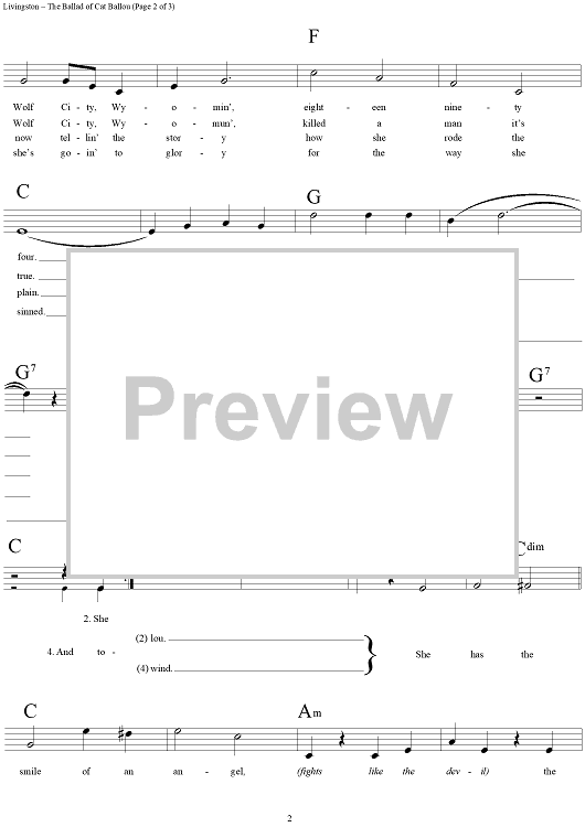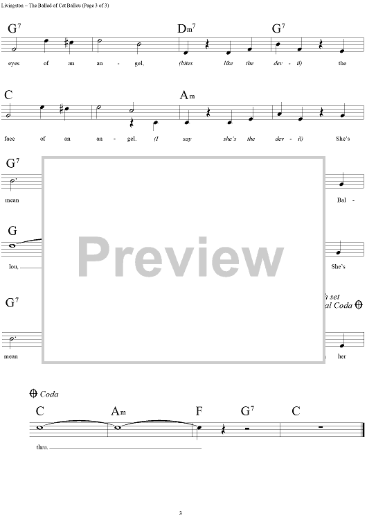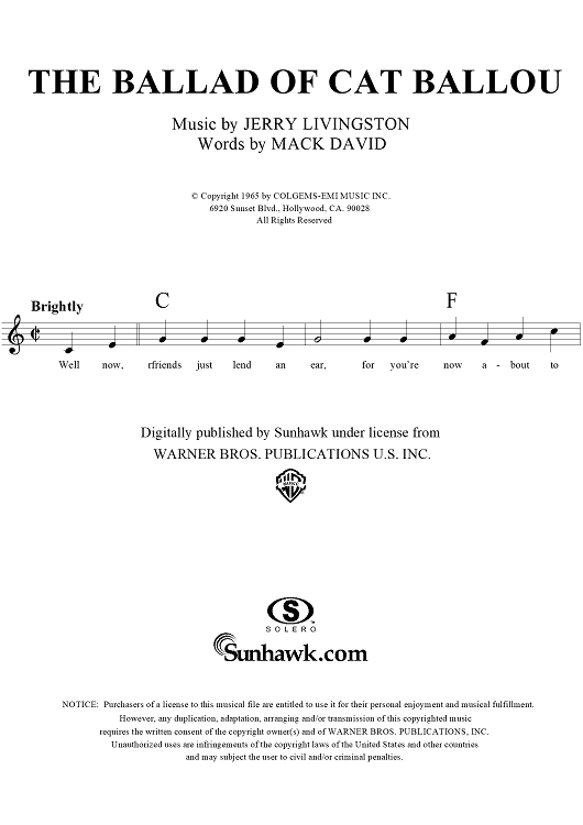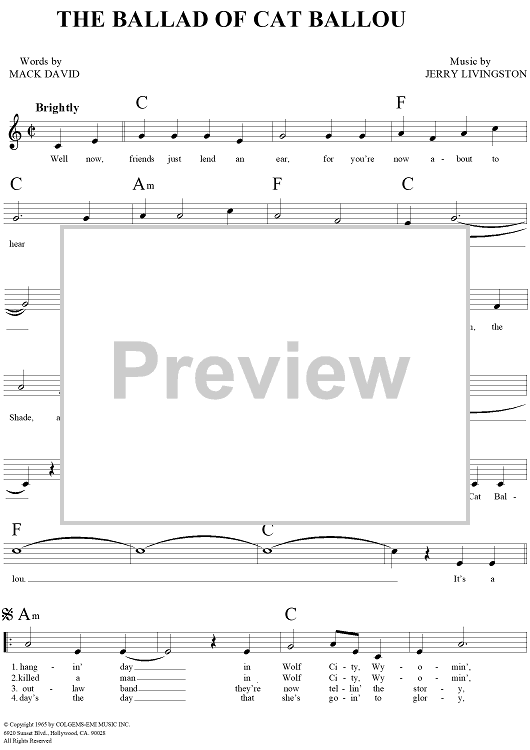 Digital Sheet Music for Ballad of Cat Ballou, The by Nat King Cole, Jerry Livingston, Mack David scored for Lead Sheet; id:250688