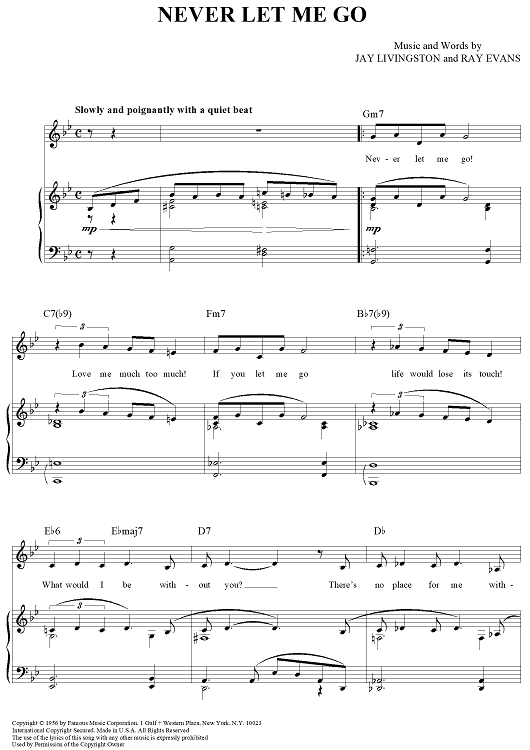 Digital Sheet Music for Never Let Me Go by Jay Livingston, Ray Evans, Nat King Cole scored for Piano/Vocal/Chords; id:365211