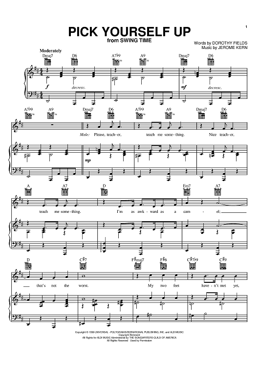 Digital Sheet Music for Pick Yourself Up by Fred Astaire, Nat King Cole, Jerome Kern, Dorothy Fields, Mel Torme scored for Piano/Vocal/Chords; id:383219