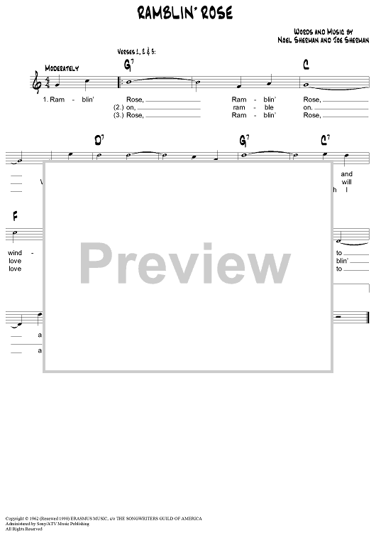 Digital Sheet Music for Ramblin' Rose by Nat King Cole, Joe Sherman, Noel Sherman scored for Lead Sheet; id:290645