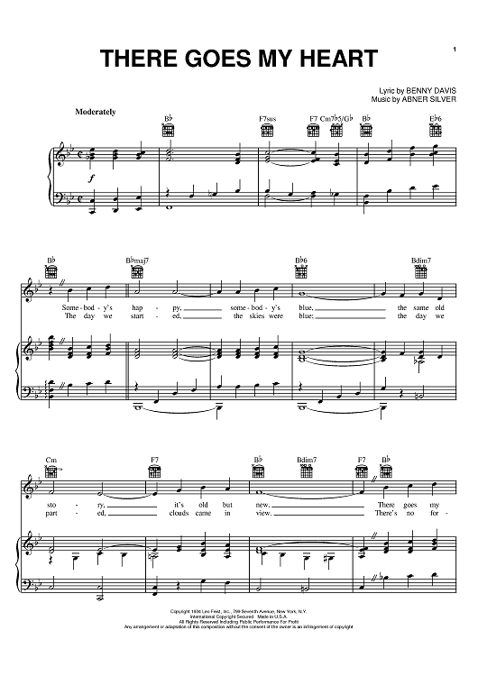 Digital Sheet Music for There Goes My Heart by Nat King Cole, Benny Davis, Abner Silver, Joni James scored for Piano/Vocal/Chords; id:374416