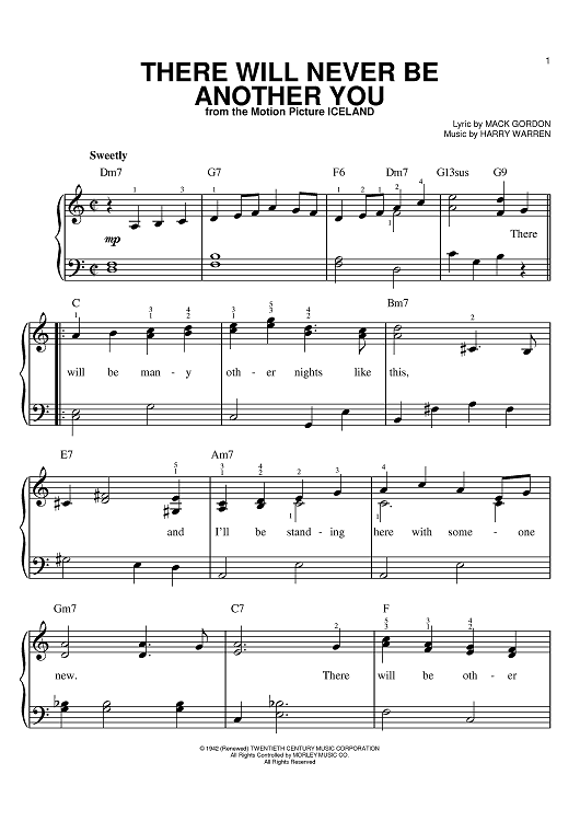 Digital Sheet Music for There Will Never Be Another You by Frank Sinatra, Nat King Cole, Harry Warren, Mack Gordon scored for Easy Piano; id:383111