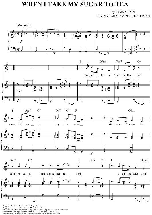 Digital Sheet Music for When I Take My Sugar to Tea by Nat King Cole, Sammy Fain, Irving Kahal, Pierre Norman scored for Piano/Vocal/Chords; id:365207