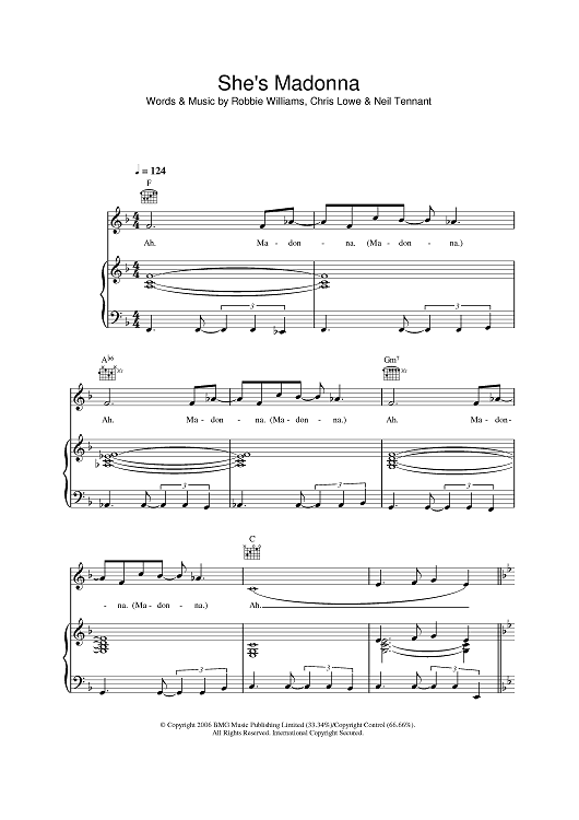 Digital Sheet Music for She's Madonna by Robbie Williams, Chris Lowe, Neil Tennant scored for Piano/Vocal/Chords; id:393633