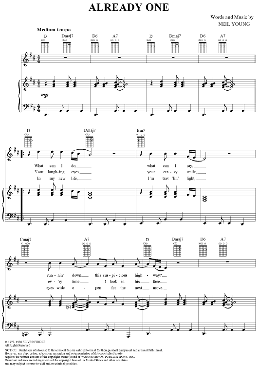 Digital Sheet Music for Already One by Neil Young scored for Piano/Vocal/Chords; id:262911