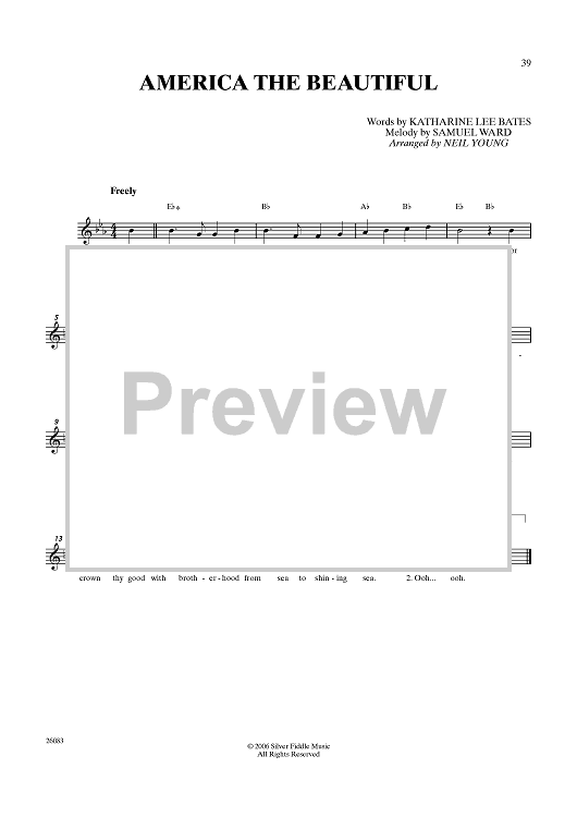 Digital Sheet Music for America the Beautiful by Neil Young, Samuel A. Ward, Katherine Lee Bates scored for Lead Sheet; id:357668