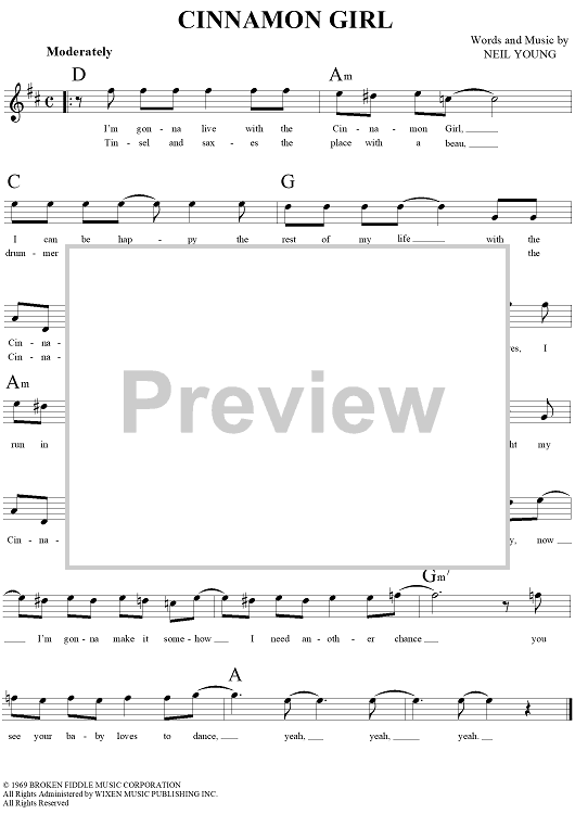 Digital Sheet Music for Cinnamon Girl by Neil Young scored for Lead Sheet; id:119925