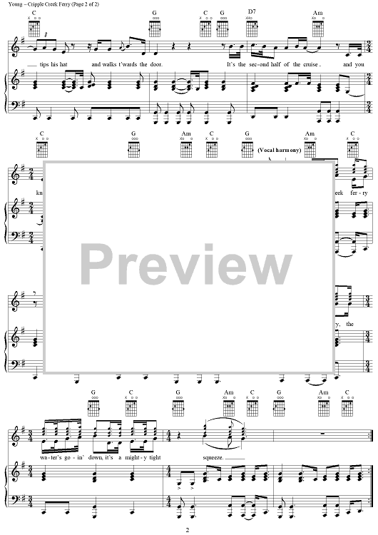 Digital Sheet Music for Cripple Creek Ferry by Neil Young scored for Piano/Vocal/Chords; id:236767