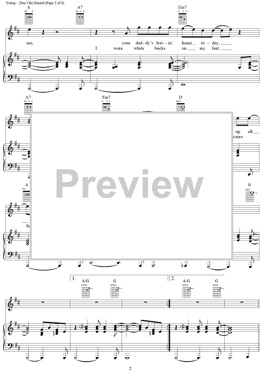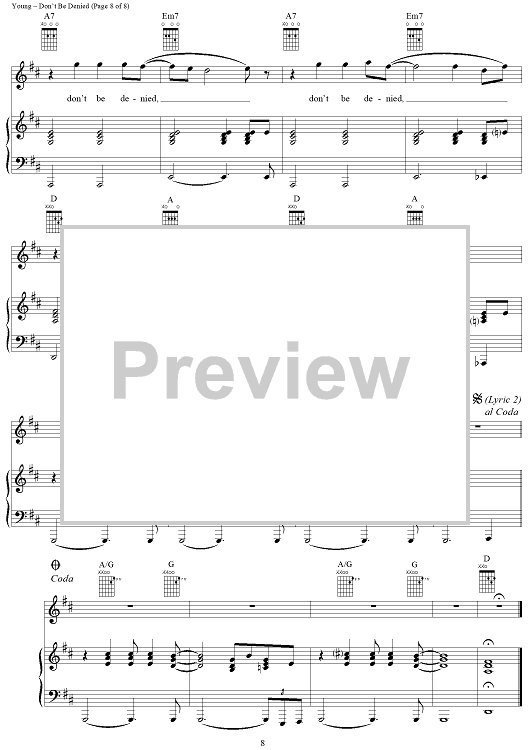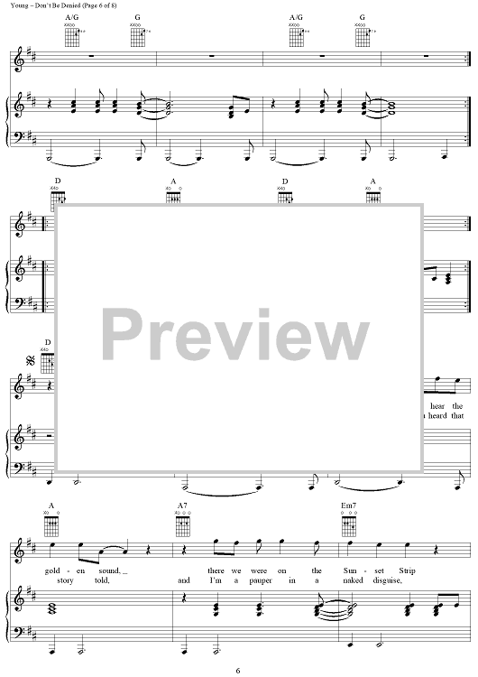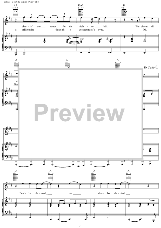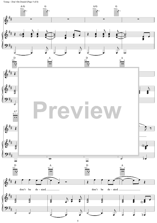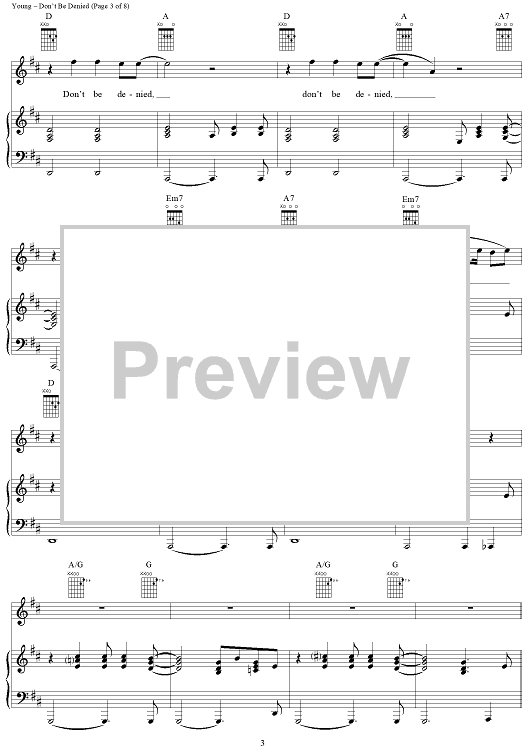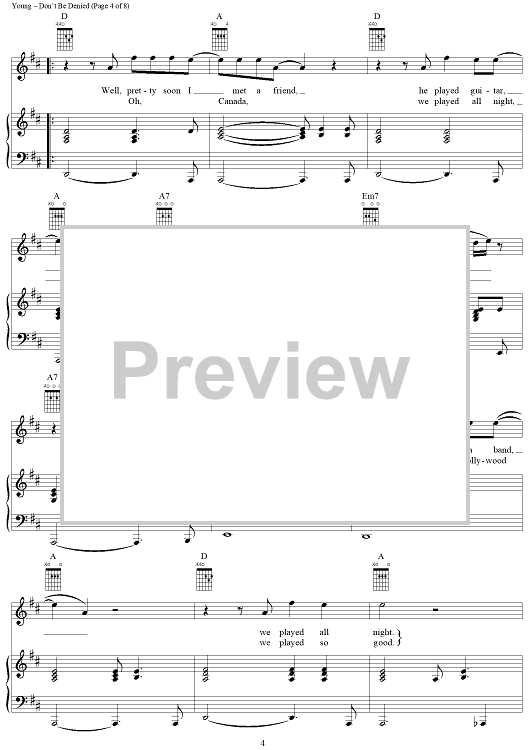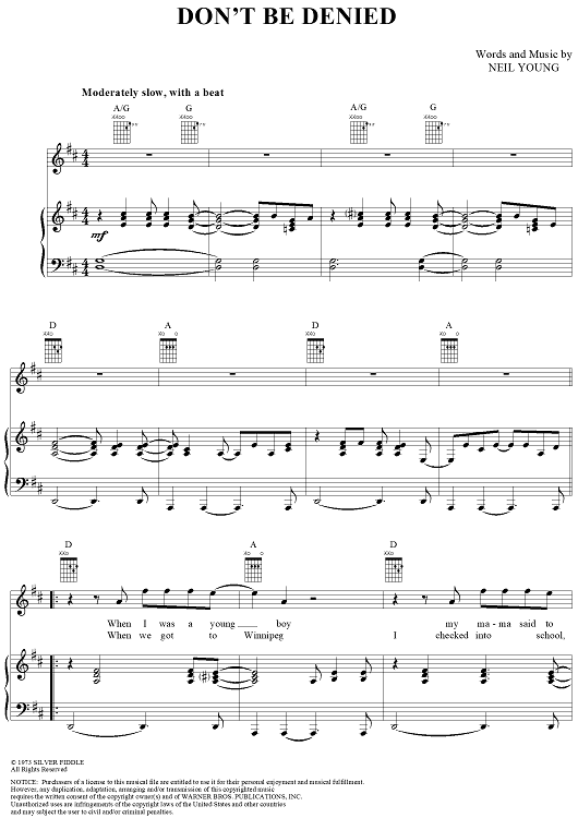 Digital Sheet Music for Don't Be Denied by Neil Young scored for Piano/Vocal/Chords; id:262931