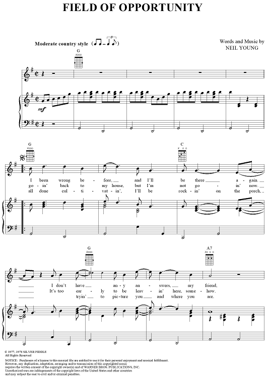 Digital Sheet Music for Field of Opportunity by Neil Young scored for Piano/Vocal/Chords; id:262954
