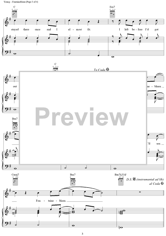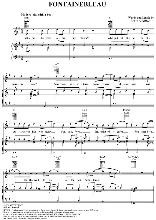 Digital Sheet Music for Fountainebleau by Neil Young scored for Piano/Vocal/Chords; id:262944