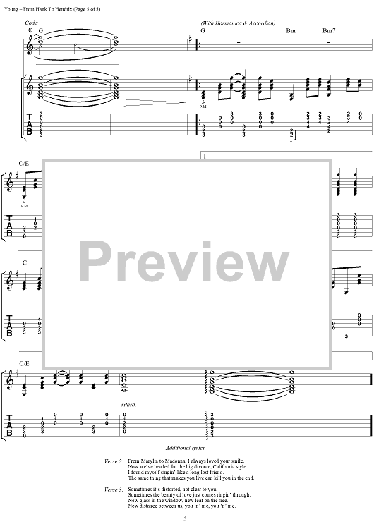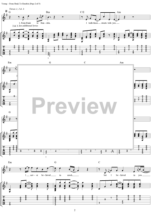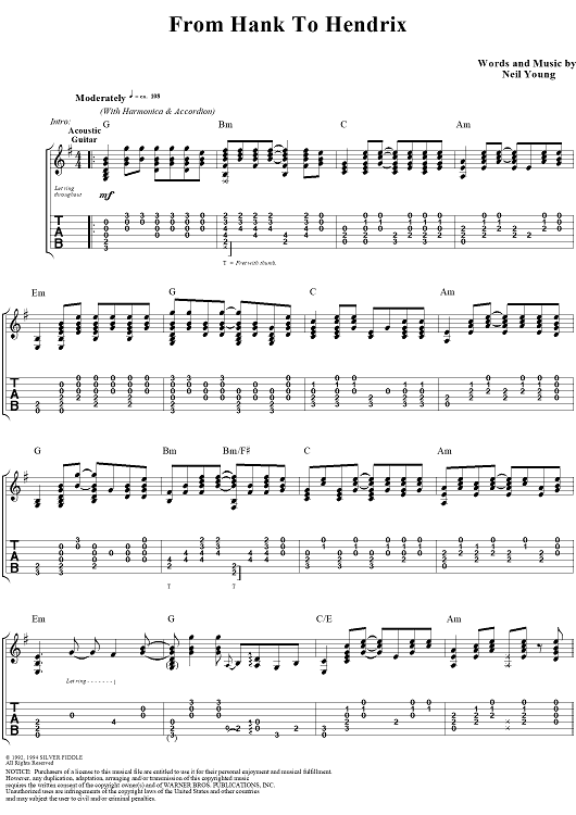 "From Hank to Hendrix" Sheet Music by Neil Young