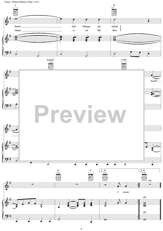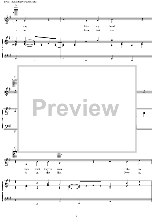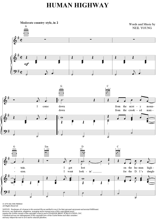 Digital Sheet Music for Human Highway by Neil Young scored for Piano/Vocal/Chords; id:262977
