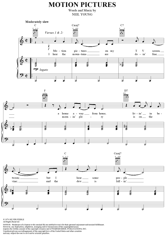 Digital Sheet Music for Motion Pictures by Neil Young scored for Piano/Vocal/Chords; id:263026