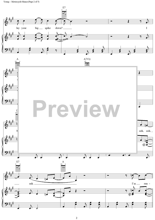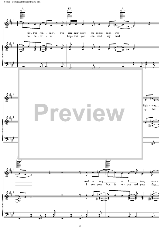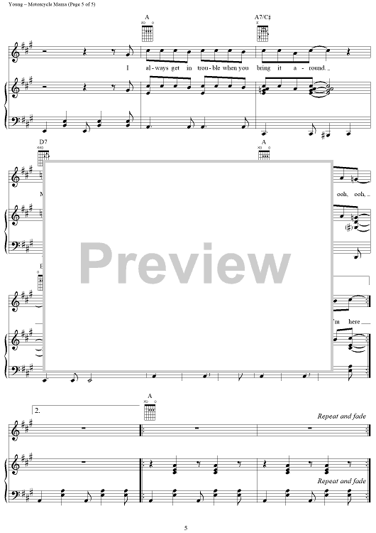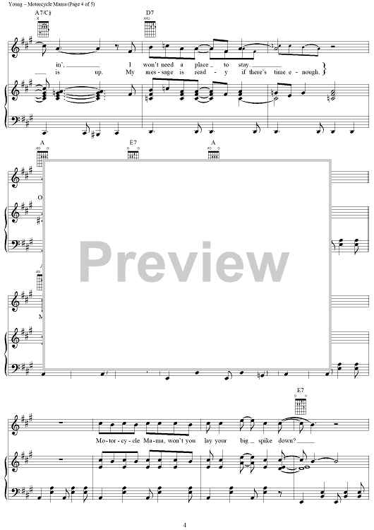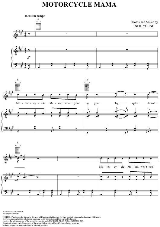 Digital Sheet Music for Motorcycle Mama by Neil Young scored for Piano/Vocal/Chords; id:263027