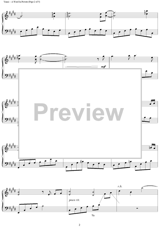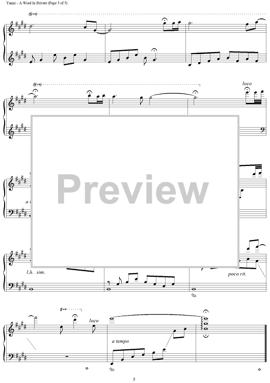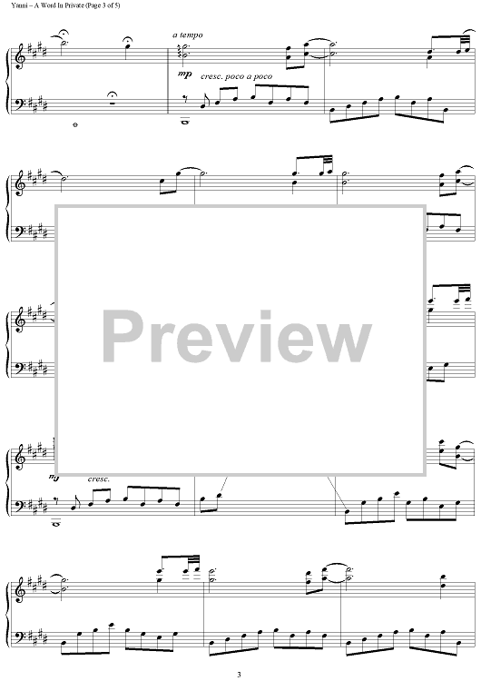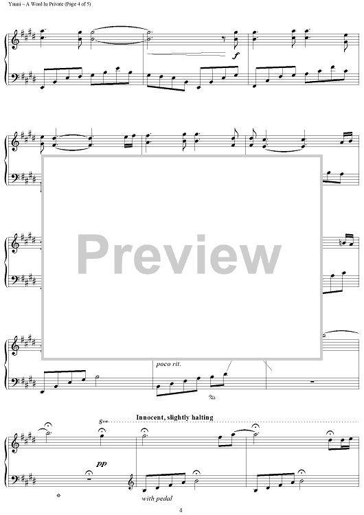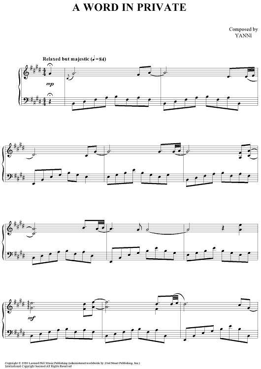 Digital Sheet Music for A Word in Private by Yanni scored for Piano Solo; id:447055