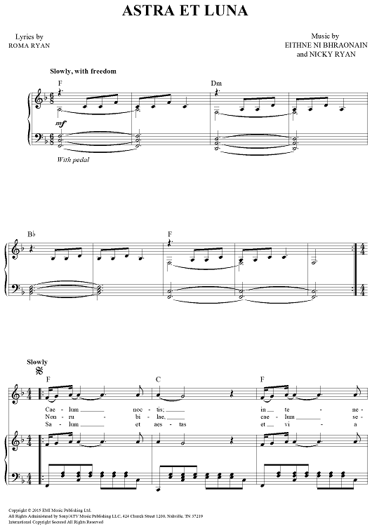 Digital Sheet Music for Astra Et Luna by Enya, Nicky Ryan, Roma Ryan scored for Piano/Vocal/Chords; id:465600