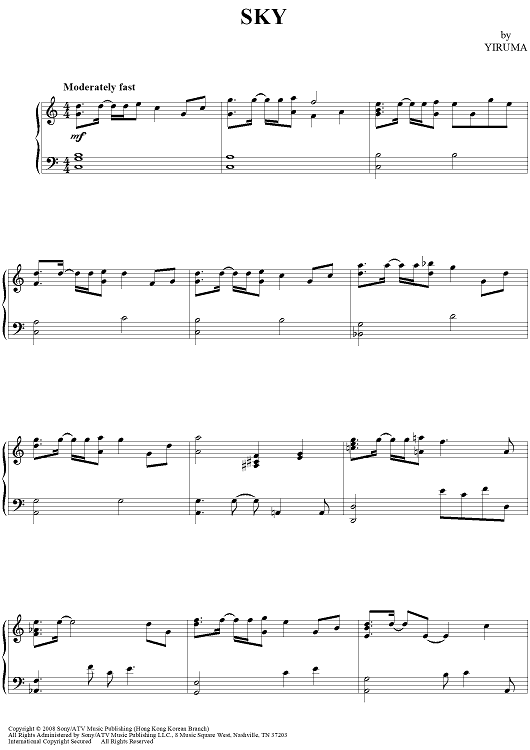 Digital Sheet Music for Sky by Yiruma scored for Piano Solo; id:443494