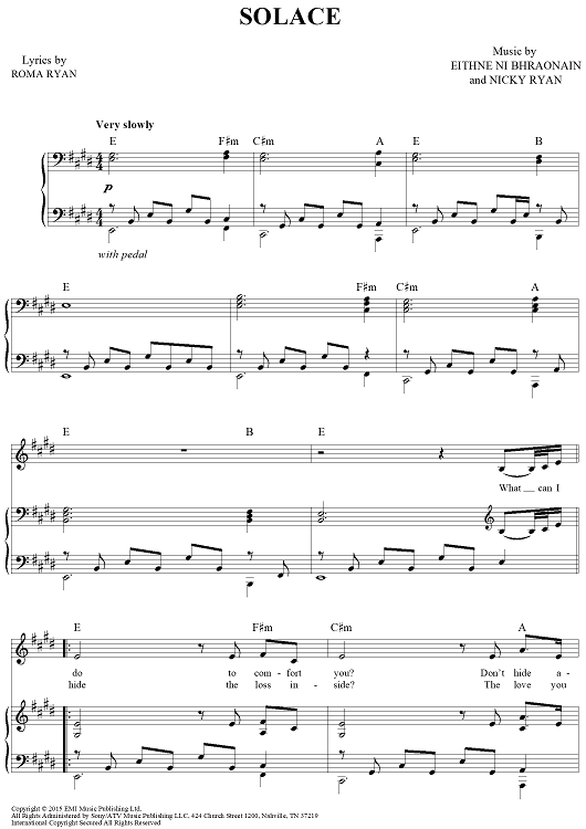 Digital Sheet Music for Solace by Enya, Nicky Ryan, Roma Ryan scored for Piano/Vocal/Chords; id:464365