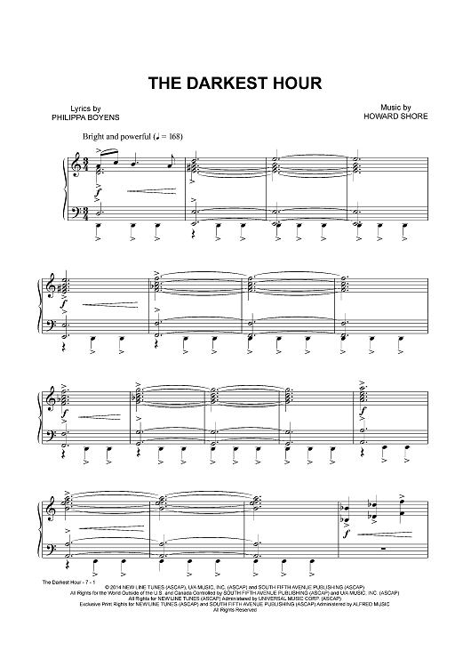 Digital Sheet Music for The Darkest Hour by Howard Shore, Philippa Boyens scored for Piano/Vocal; id:449564