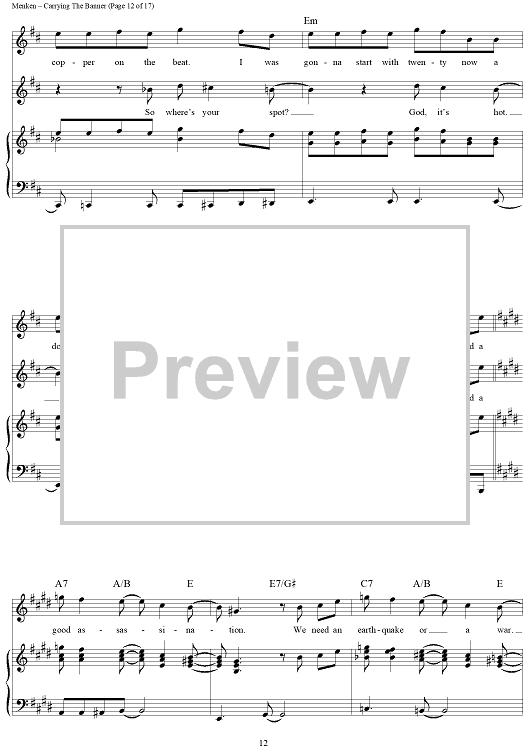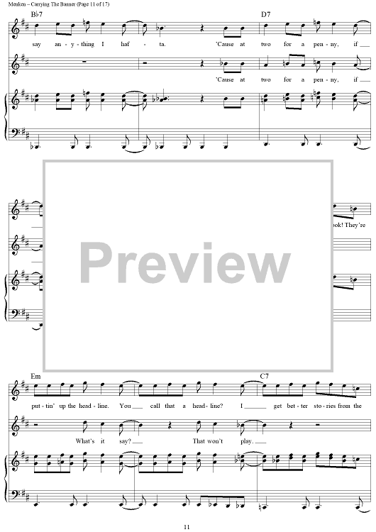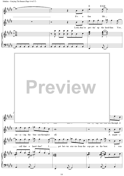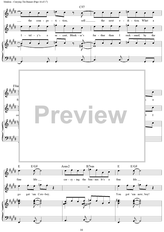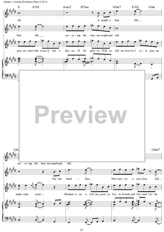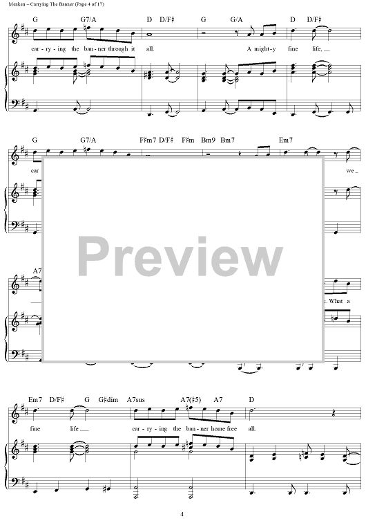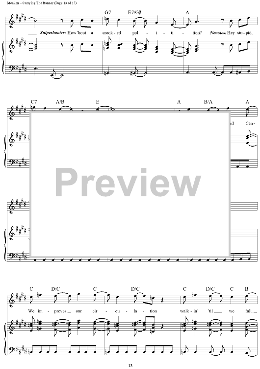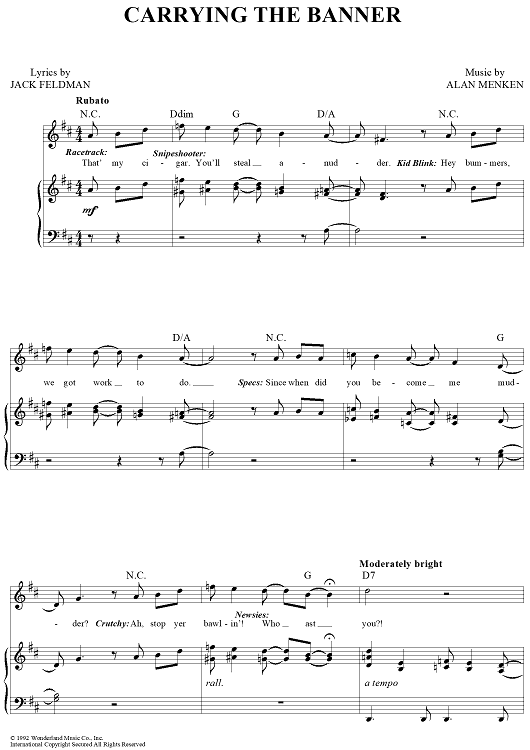 Digital Sheet Music for Carrying The Banner by Alan Menken, Jack Feldman scored for Piano/Vocal/Chords; id:418120