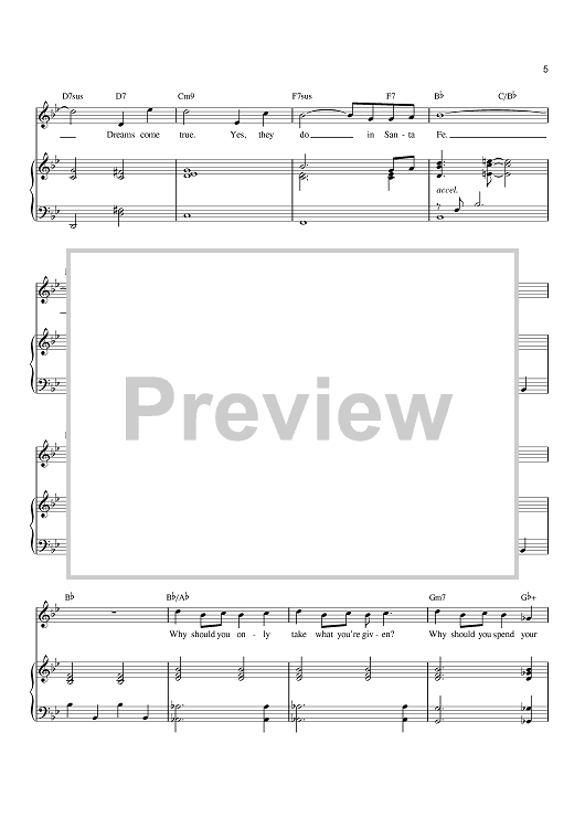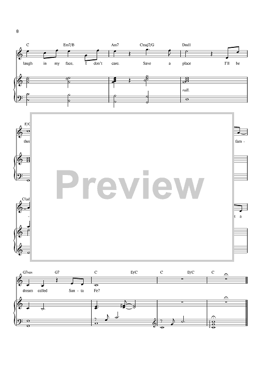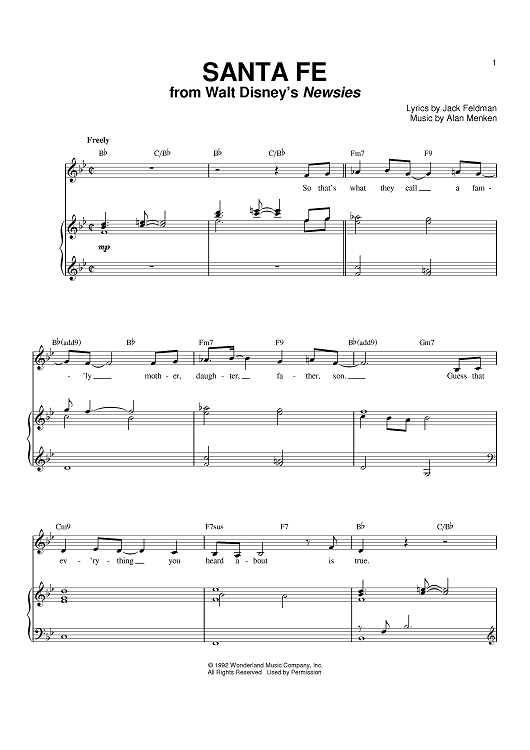 Digital Sheet Music for Santa Fe by Alan Menken, Jack Feldman scored for Piano/Vocal/Chords; id:381232