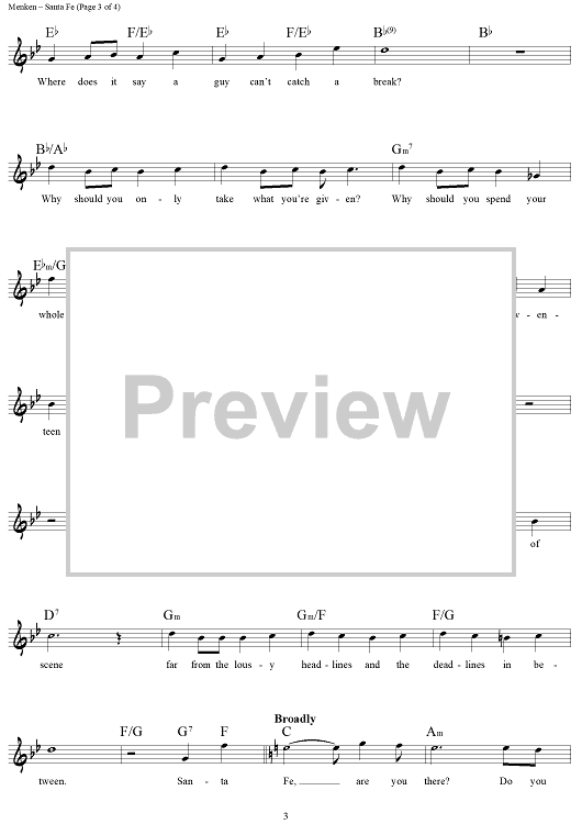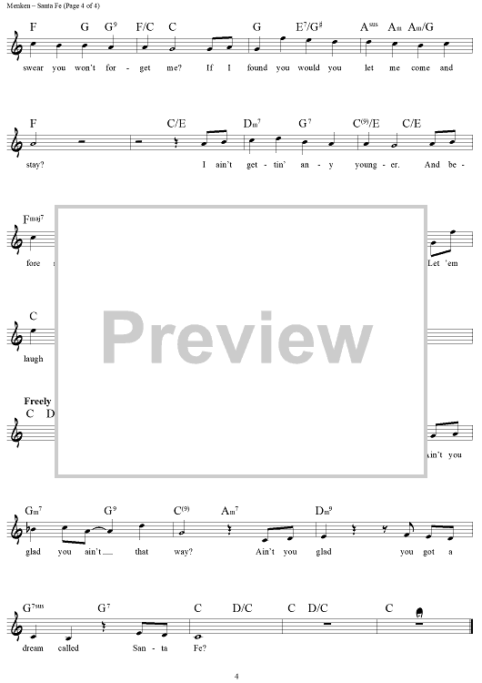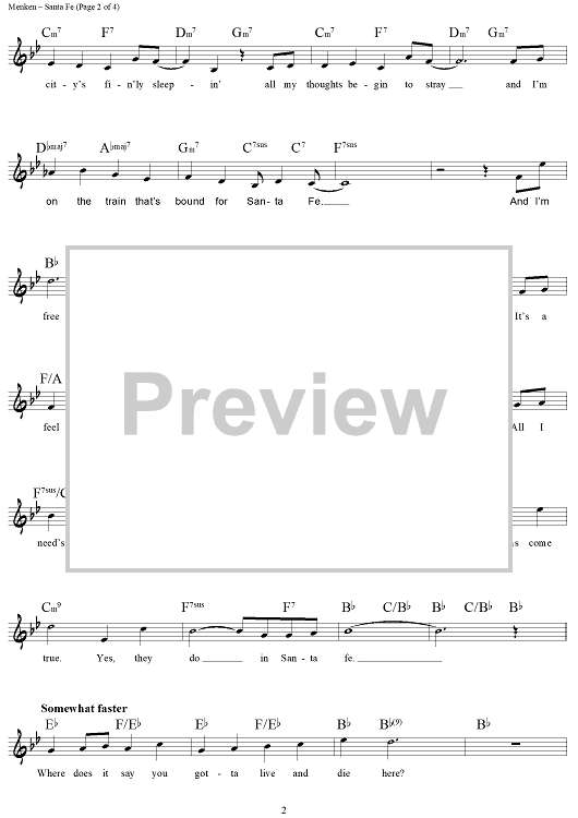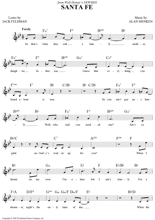 Digital Sheet Music for Santa Fe by Alan Menken, Jack Feldman scored for Lead Sheet; id:444203