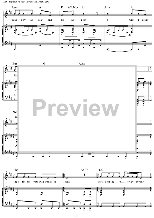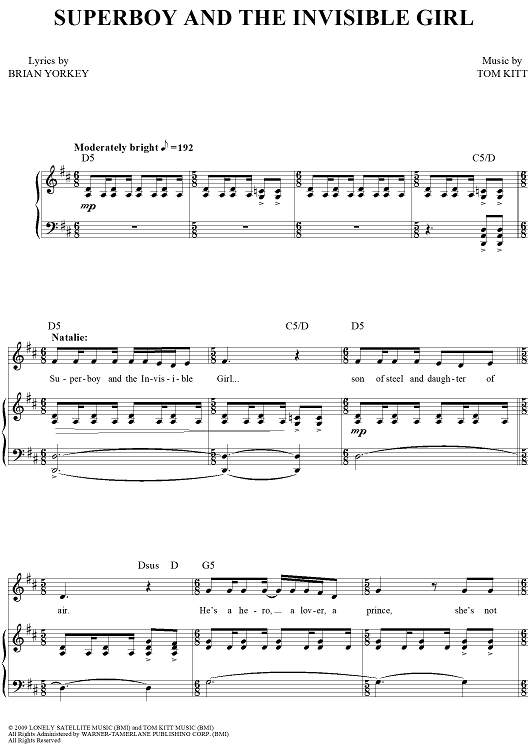 "Superboy And The Invisible Girl" Sheet Music by Tom Kitt