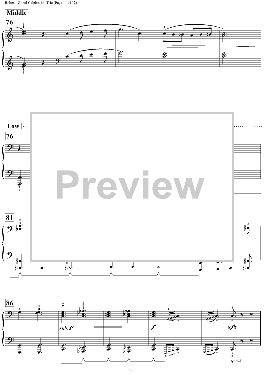 "Grand Celebration Trio" Sheet Music by Melody Bober