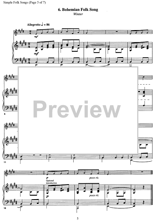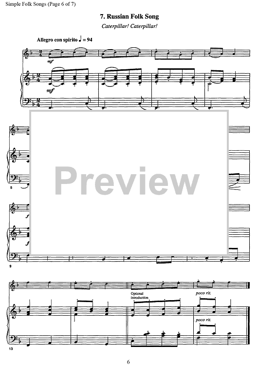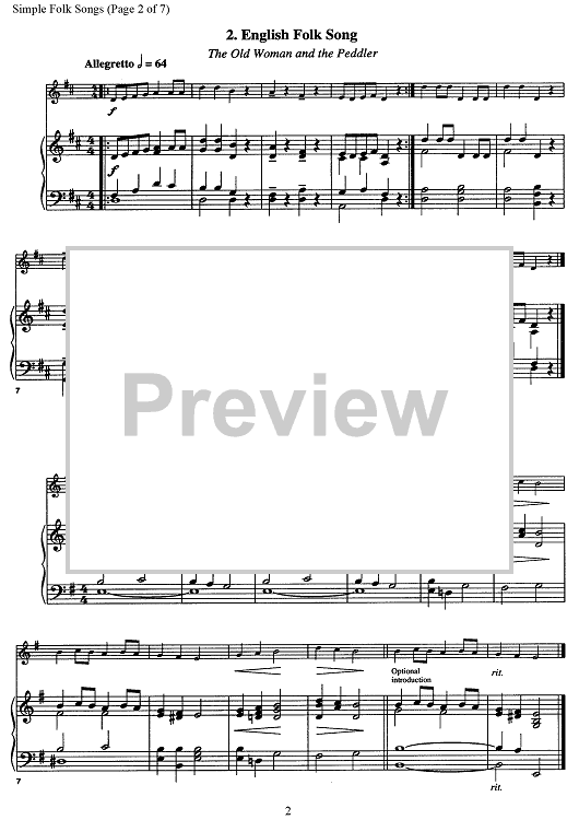 "Simple Folk Songs" Sheet Music by Various
