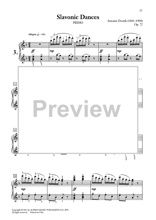"Slavonic Dances - No. 3" Sheet Music by Antonín Dvorák