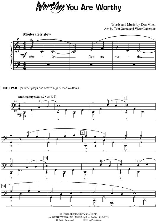 "Worthy, You Are Worthy" Sheet Music by Don Moen