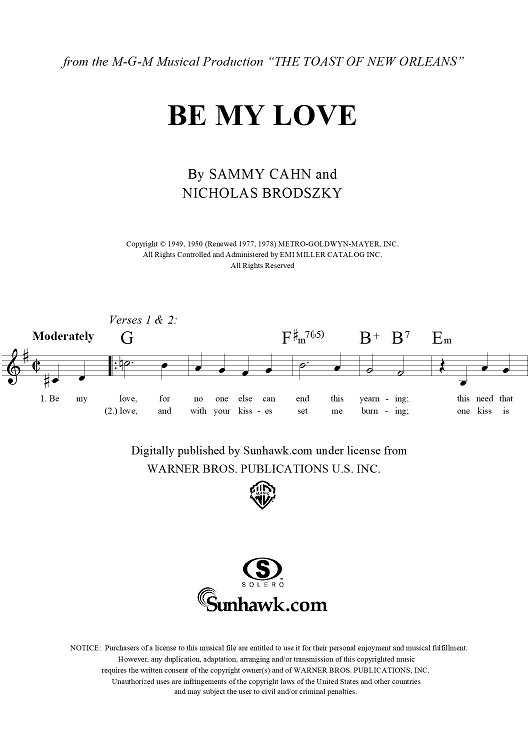 Digital Sheet Music for Be My Love by Sammy Cahn, Nicholas Brodszky scored for Lead Sheet; id:273465