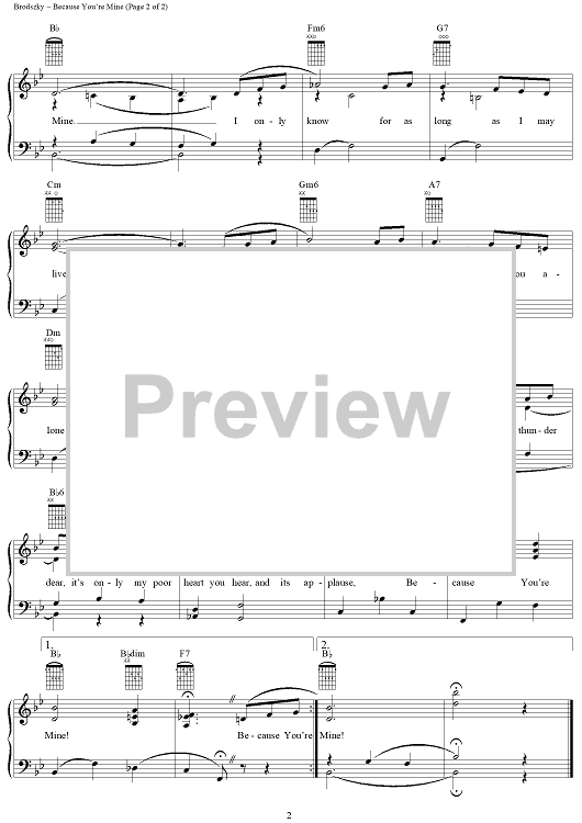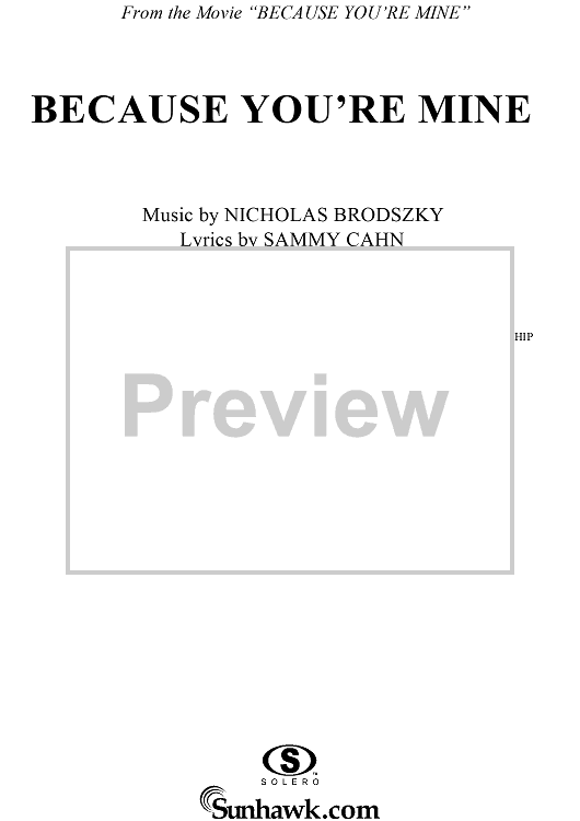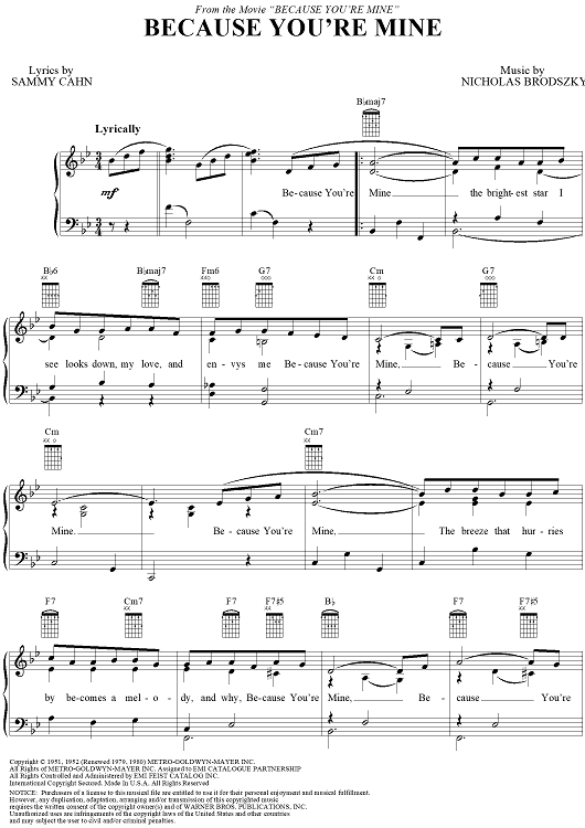 Digital Sheet Music for Because You're Mine by Sammy Cahn, Nicholas Brodszky scored for Piano/Vocal/Chords; id:274676