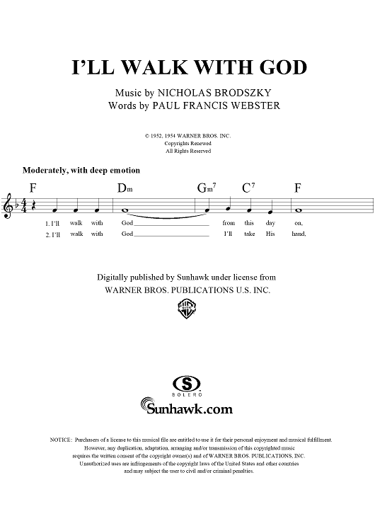 "I'll Walk With God" Sheet Music by Nicholas Brodszky