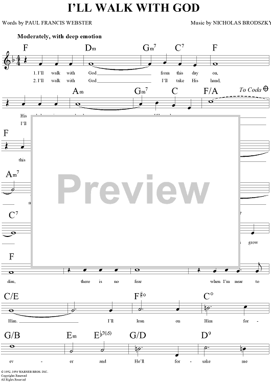 Digital Sheet Music for I'll Walk With God by Paul Francis Webster, Nicholas Brodszky scored for Lead Sheet; id:274560