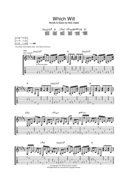Digital Sheet Music for Which Will by Nick Drake scored for Guitar Tab; id:387315