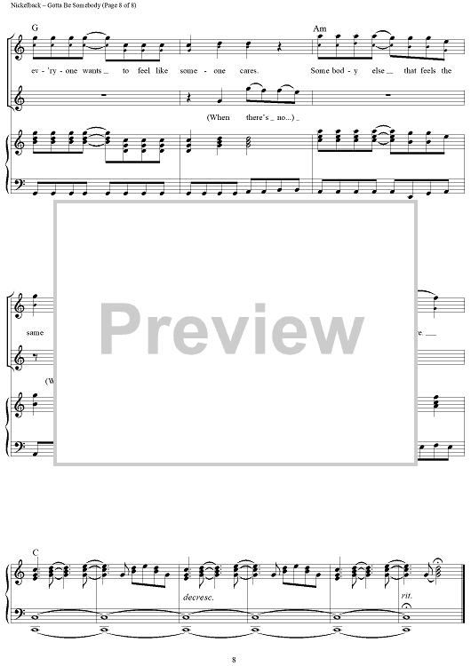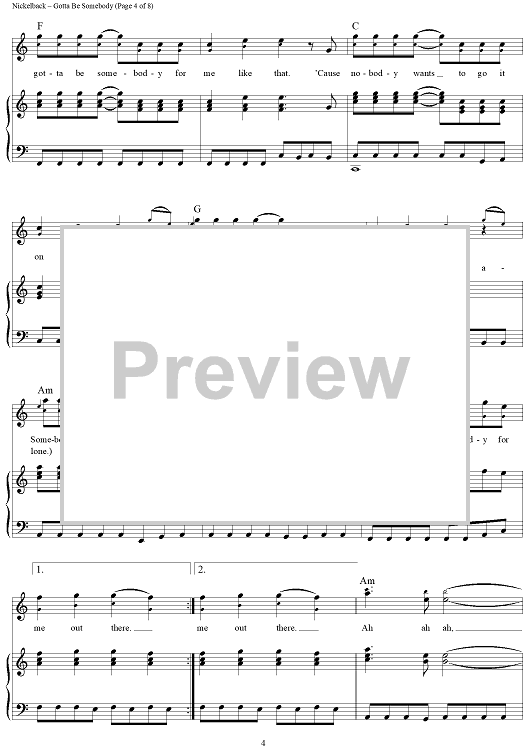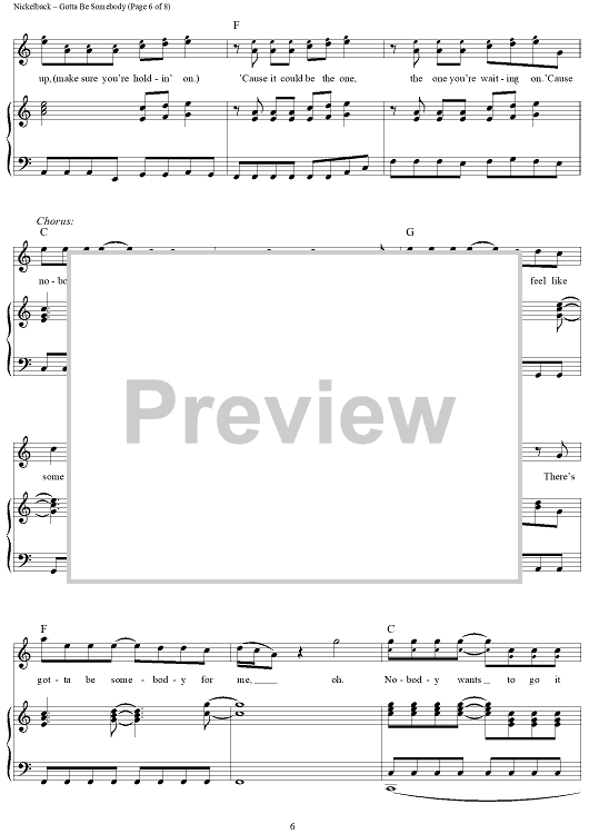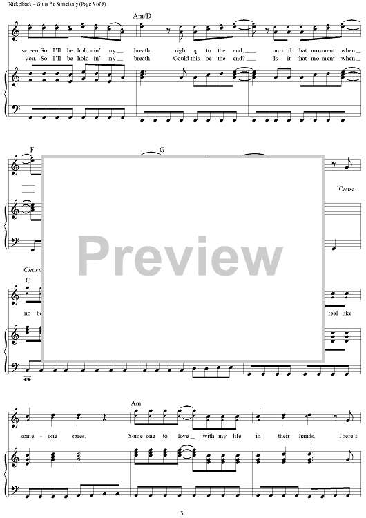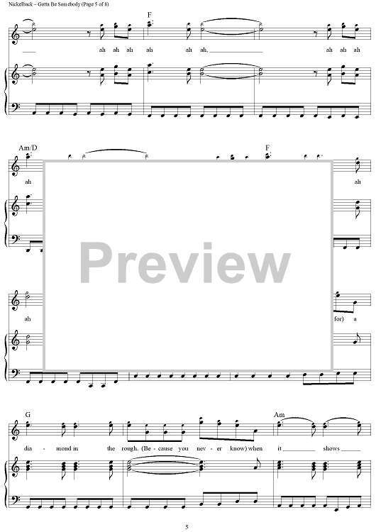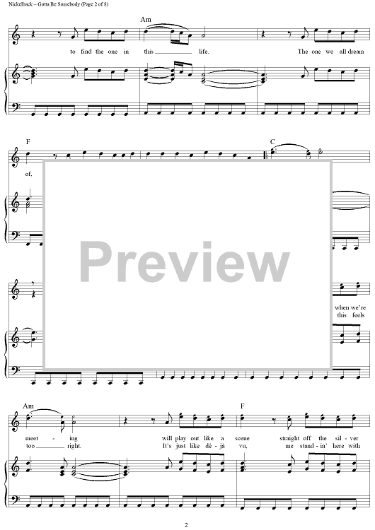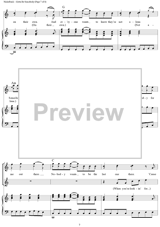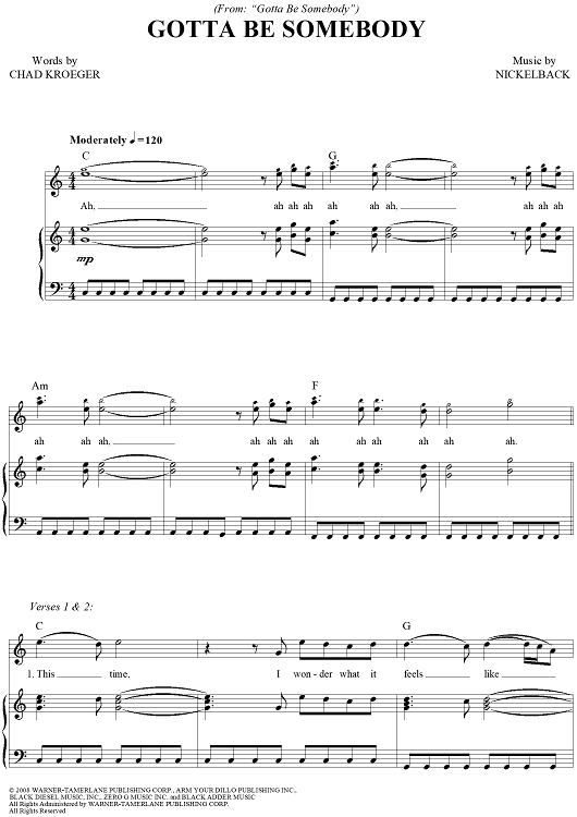 Digital Sheet Music for Gotta Be Somebody by Nickelback, Chad Kroeger scored for Piano/Vocal/Chords; id:409750