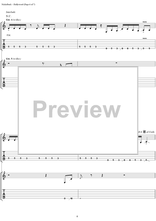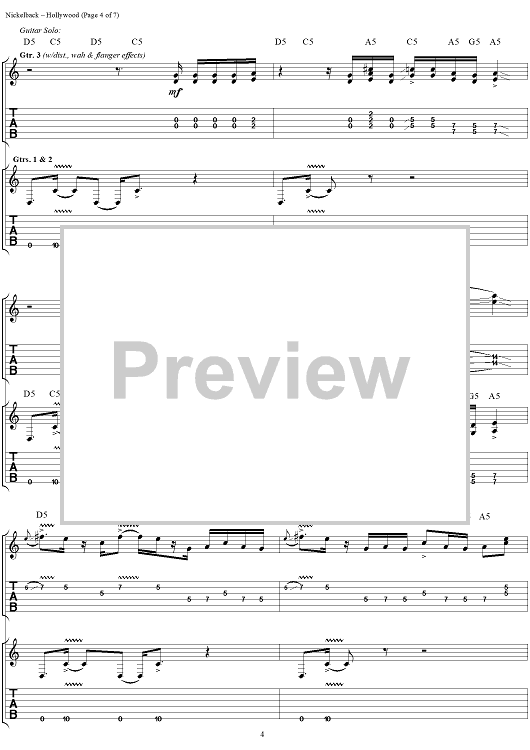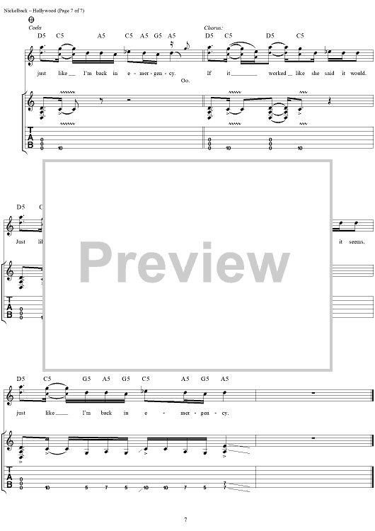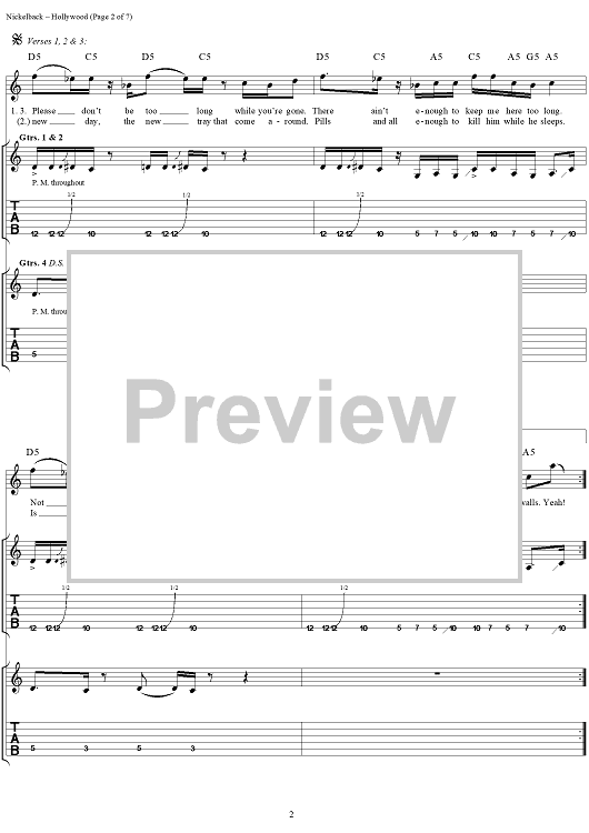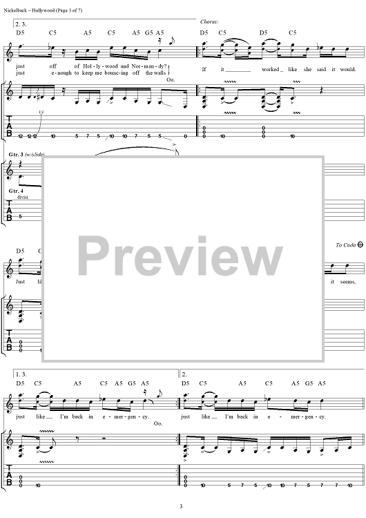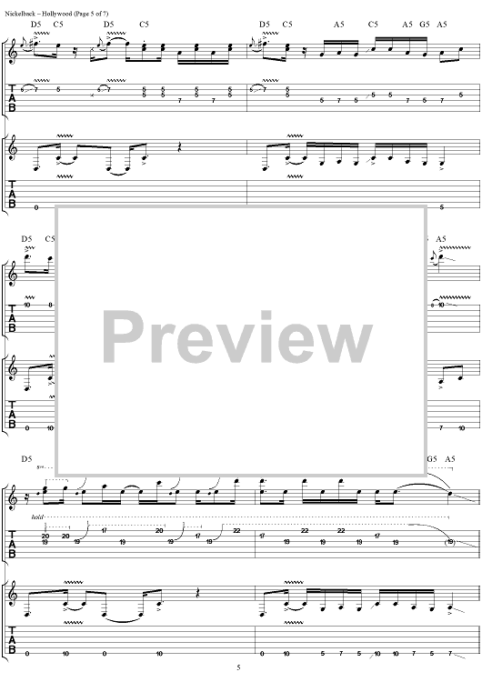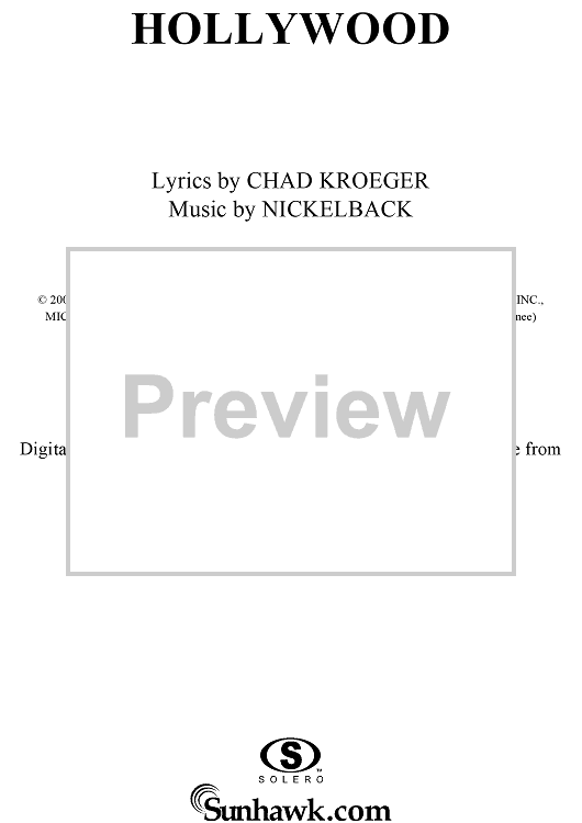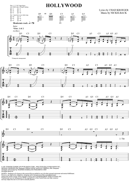 Digital Sheet Music for Hollywood by Nickelback, Chad Kroeger scored for Guitar Tab/Vocal; id:287812