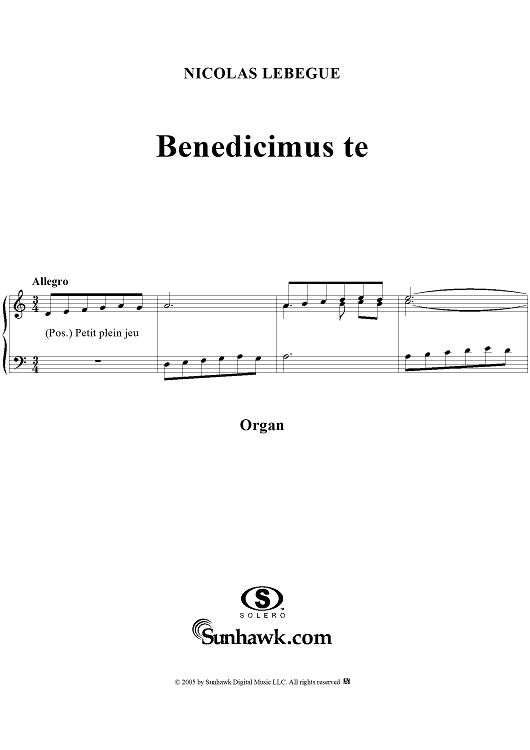 Digital Sheet Music for Benedicimus te by Nicolas Antoine Le Bègue scored for Organ Solo; id:305783